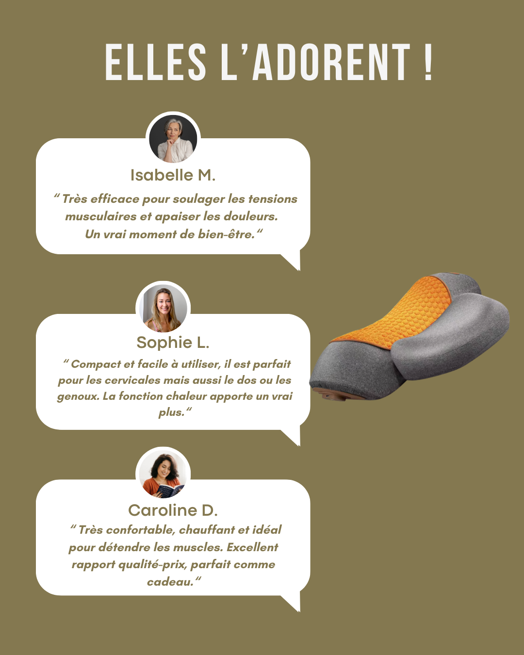 La plupart des utilisatrices ressentent une sensation de détente dès les premières minutes . Une utilisation régulière permet de réduire durablement les tensions et d'améliorer le confort de la nuque au quotidien.