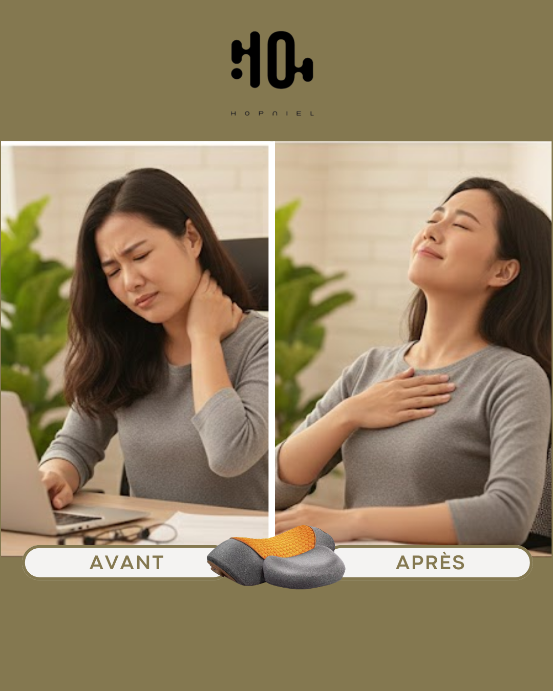 Grâce à un massage cervical ciblé et une chaleur douce, les muscles se détendent, la posture s'améliore et le confort revient naturellement, jour après jou.